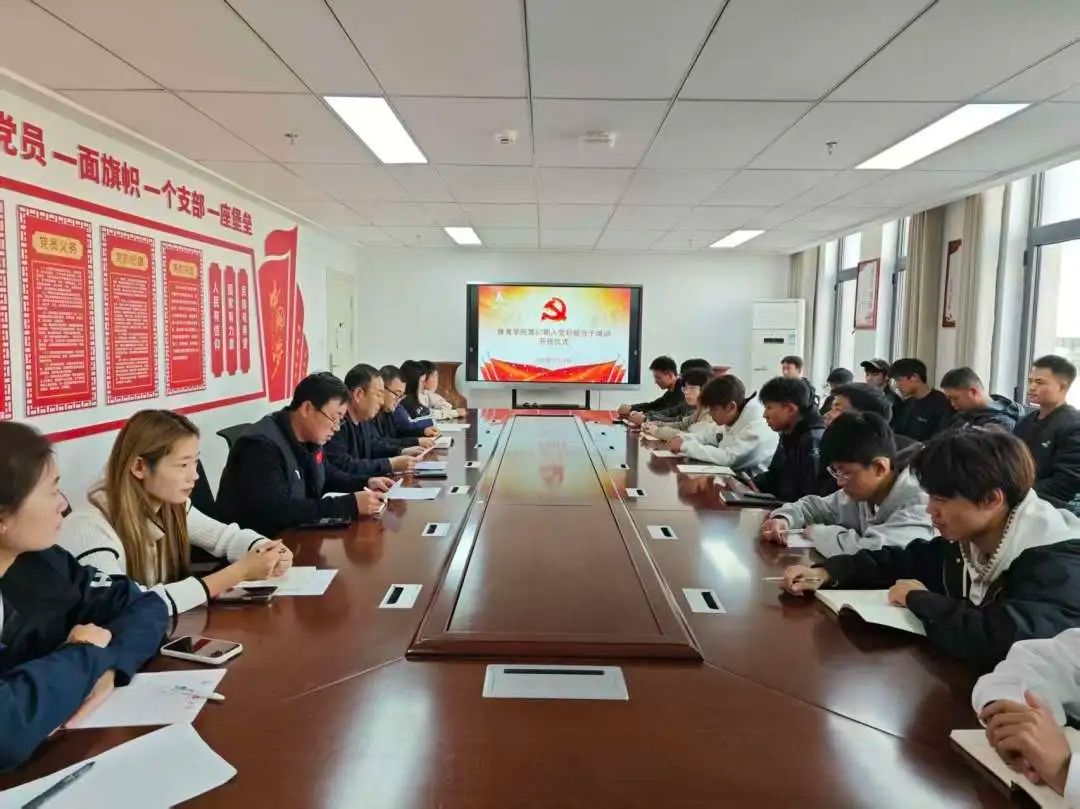 兰鸿涛书记作了题为《端正入党动机·争做时代先锋》的党课,并对全体学员提出三点希望:一是树立正确的入党动机,时刻以党员的标准严格要求自己,深入学习党的理论和实践经验,从实际行动上追随党;二是以饱满的热情、严谨的态度、务实的学风,圆满完成各项学习任务,做到学有所获、学以致用、学用相长;三是持续践行延安精神,弘扬红色体育文化,不断提高政治理论水平,强化党性锤炼,以优异的实绩接受党组织的考验。