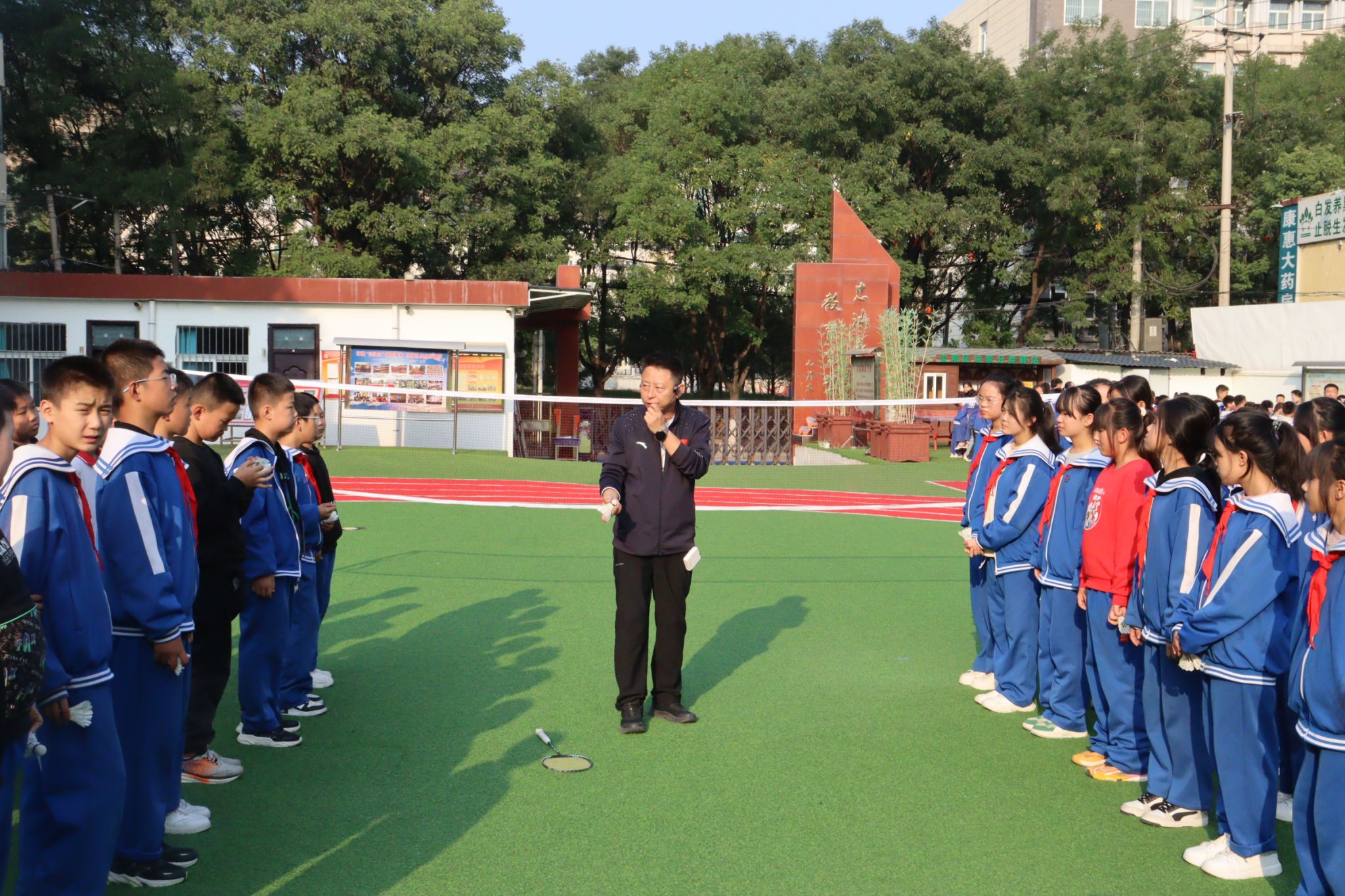 签约仪式结束后,公海5500线路检测杨磊老师为小学生作了一场生动有趣的体育知识讲座,姜小峰老师现场指导小学生羽毛球动作技术,深厚的理论知识和专业的技术水平,深深地吸引着孩子们,大大地激发了孩子们的运动热情和兴趣。