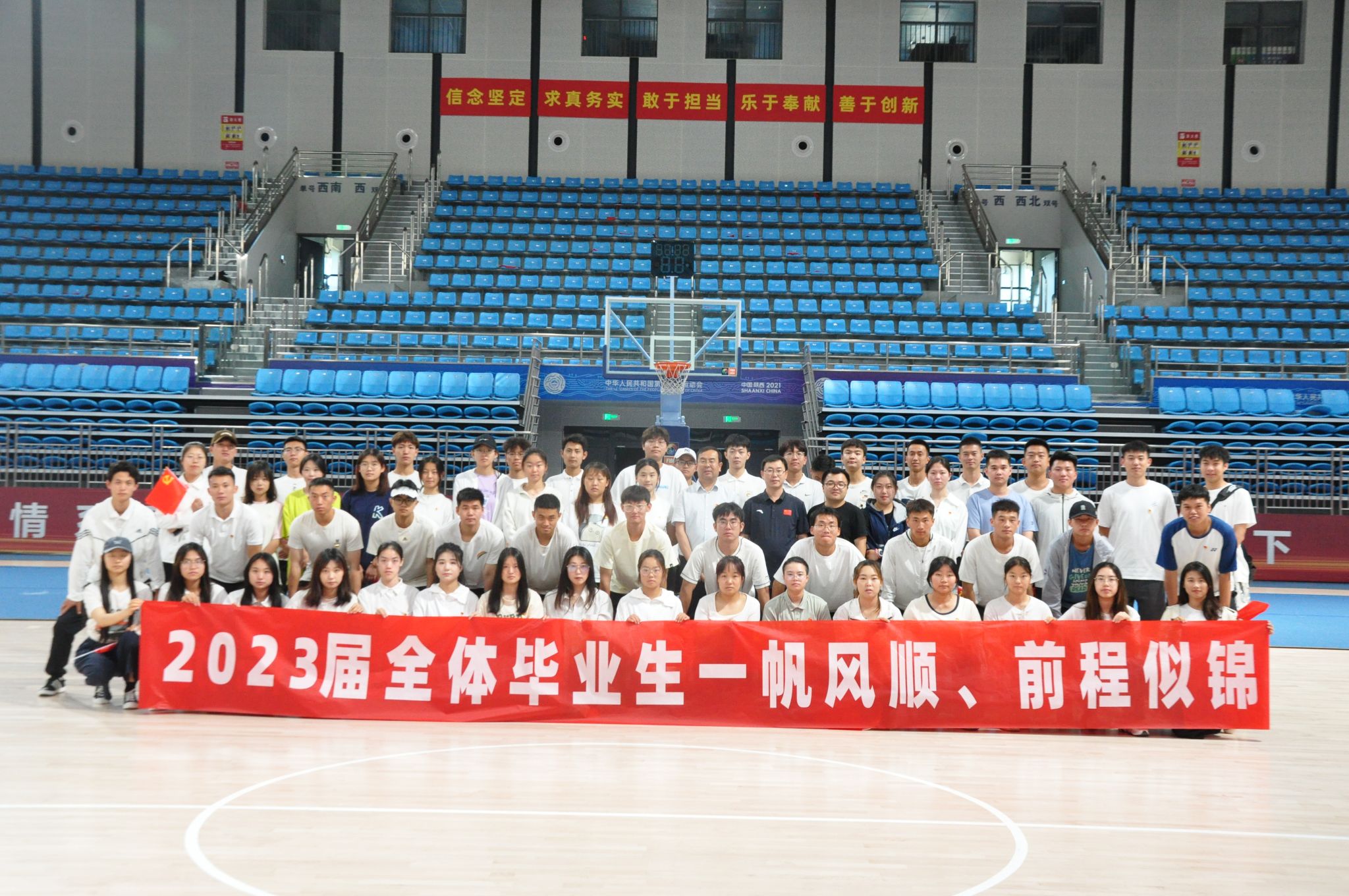 升旗活动结束后,学院在新校区体育中心开展了“青春心向党·扬帆再起航”主题党日活动暨毕业生党员欢送会,活动由学院党委副书记徐海阔主持。