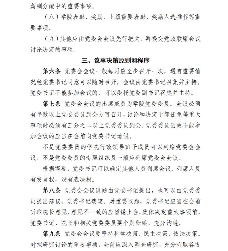 《公海贵宾会5500iii学院党委会会议议事规则》《公海贵宾会5500iii学院党政联席会议议事规则》