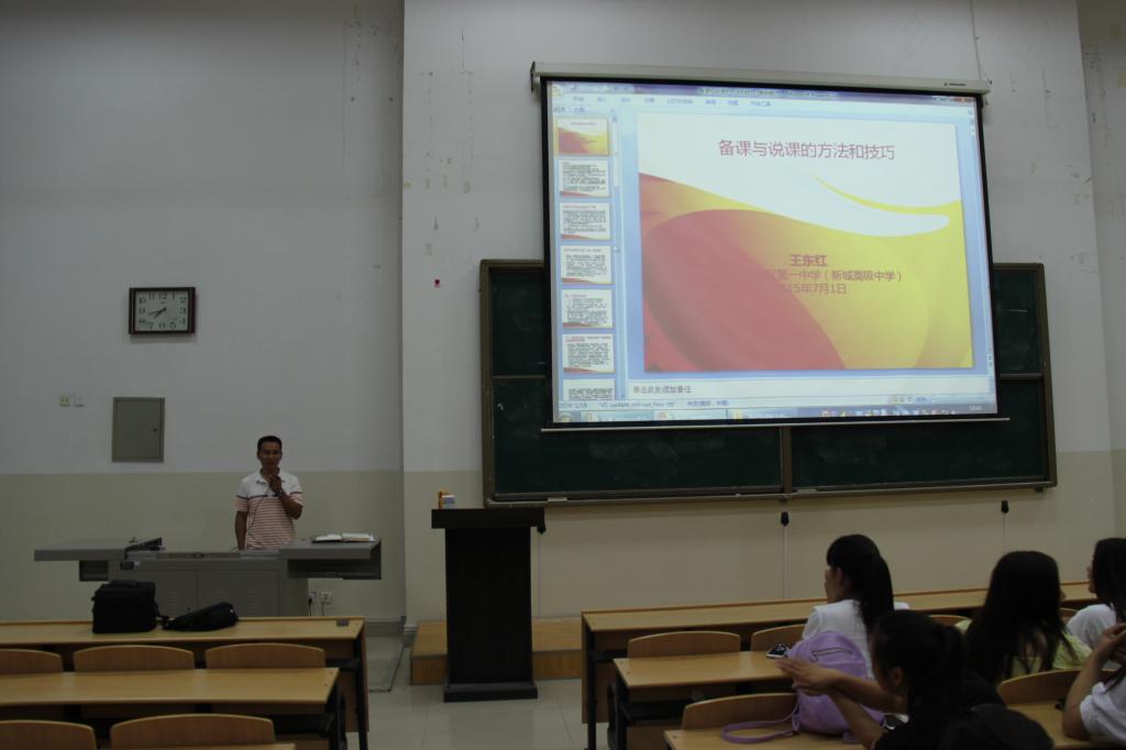 本届师范生以班级为单位共分4个实习小组,我院选派副教授以上资深教师4名作为指导教师,全面指导各组的实习准备工作。从早操的队列队形,广播体操的学习再到专项运动技能的讲授;从教学设计、说课到模拟授课,利用早操时间和课余时间集中练习和指导,从实践和理论两个方面做足功课。为加强实习准备的针对性,本届实习准备工作走入中学, 12级3班作为试点,从本学期第11周开始,每周每人三次到宝塔区一中辅导中学生的课外体育活动,帮助体育兴趣小组学习和训练,“做中学”,学的更高效。为提高学生面试方面的能力,特邀省级教学能手、宝塔区一中体音美组长、我院优秀毕业生王东红老师为本届实习生作体育教学-说课、面试技能培训。