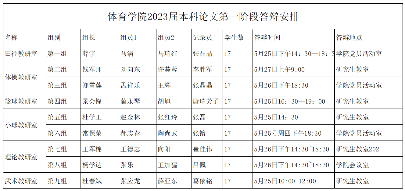 2.委员会下设 9个答辩评审小组;每个小组由 3 人组成,其中至少有2人是副教授及其以上职称或博士(分组情况见下表)。