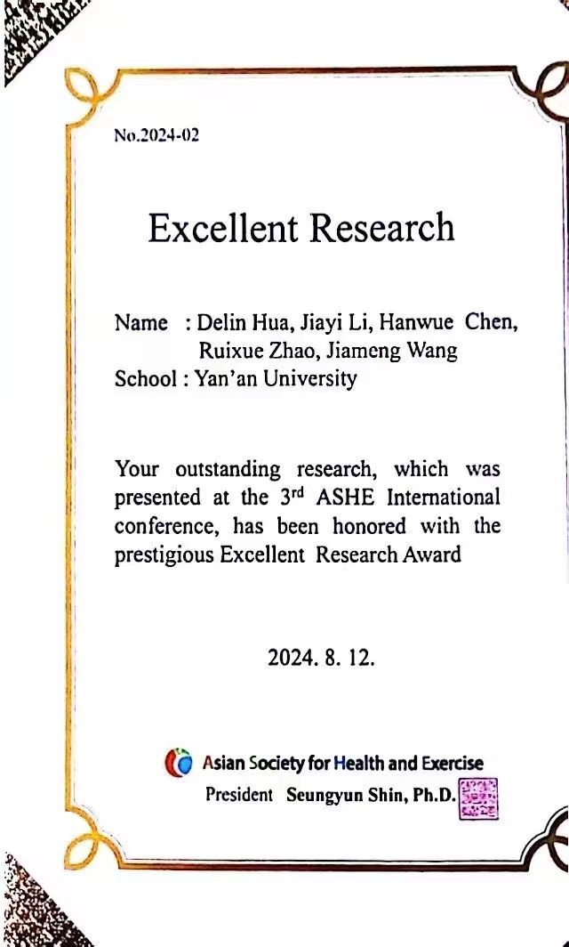 8月12至15日,由亚洲健康与运动学会主办,韩国龙仁大学承办,韩国体育测量与评价学会、武汉公海5500线路检测武术学院、武汉公海5500线路检测东北亚民族传统体育研究中心协办,Journal of Asian Society for Health & Exercise编辑部提供学术支持的“2024年第三届国际健康与运动高峰论坛”在韩国龙仁大学举行。我院教师王加猛、何静子,研究生张一凡、运动康复专业本科生李佳仪、华德林参加会议。本次会议为亚洲健康与运动学会的年度学术会议,围绕“科技赋能 健康促进”为主题进行学术研讨,旨在共同缔造亚洲特色、造福亚洲人群的学术发展思路,针对亚洲人群健康风险问题如何实施“体医融合”提供了新思路、新视角、新方法,形成了亚洲互联、信息互通、学识共享的学术研究交流平台,增进亚洲国家或地区学者的学术交流与合作。在本次会议上,北京体育大学、武汉公海5500线路检测、中国地质大学、郑州大学、龙仁大学、京畿大学、马来亚大学、公海贵宾会5500iii等30所体育领域知名高校50余名人员参会并进行专题报告。会议收录论文80余篇,其中高质量论文24篇,亚洲健康与运动学会国内外专家共同评选出优秀论文3篇。