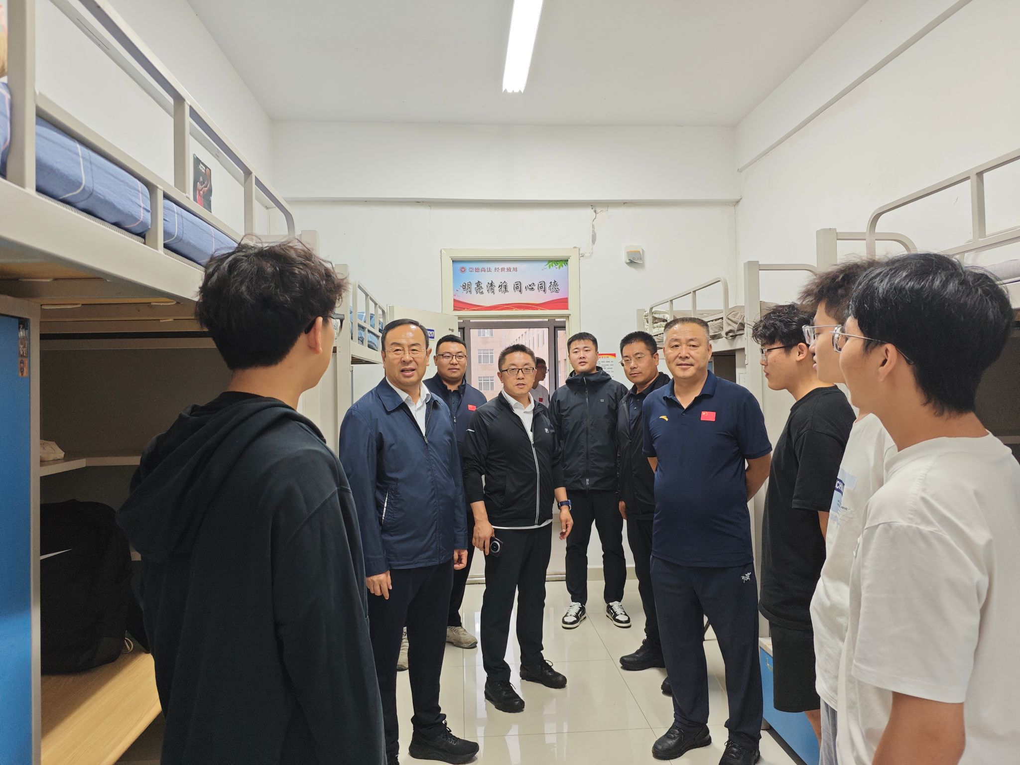 在学生宿舍,各位院领导和学生们亲切交谈,询问新生进校感受、生活保障以及其他年级学生学习情况。一句句亲切的问候,让初入校园的新生们倍感温暖。希望同学们尽快适应大学生活,为新学期创造一个良好的开端;叮嘱同学们在坚持运动训练的同时要提高自身安全防范意识,做好安全防护措施,避免运动时发生意外;勉励同学们积极做好大学四年学涯规划,丰富自己的大学生活,为将来毕业就业打下坚实基础。