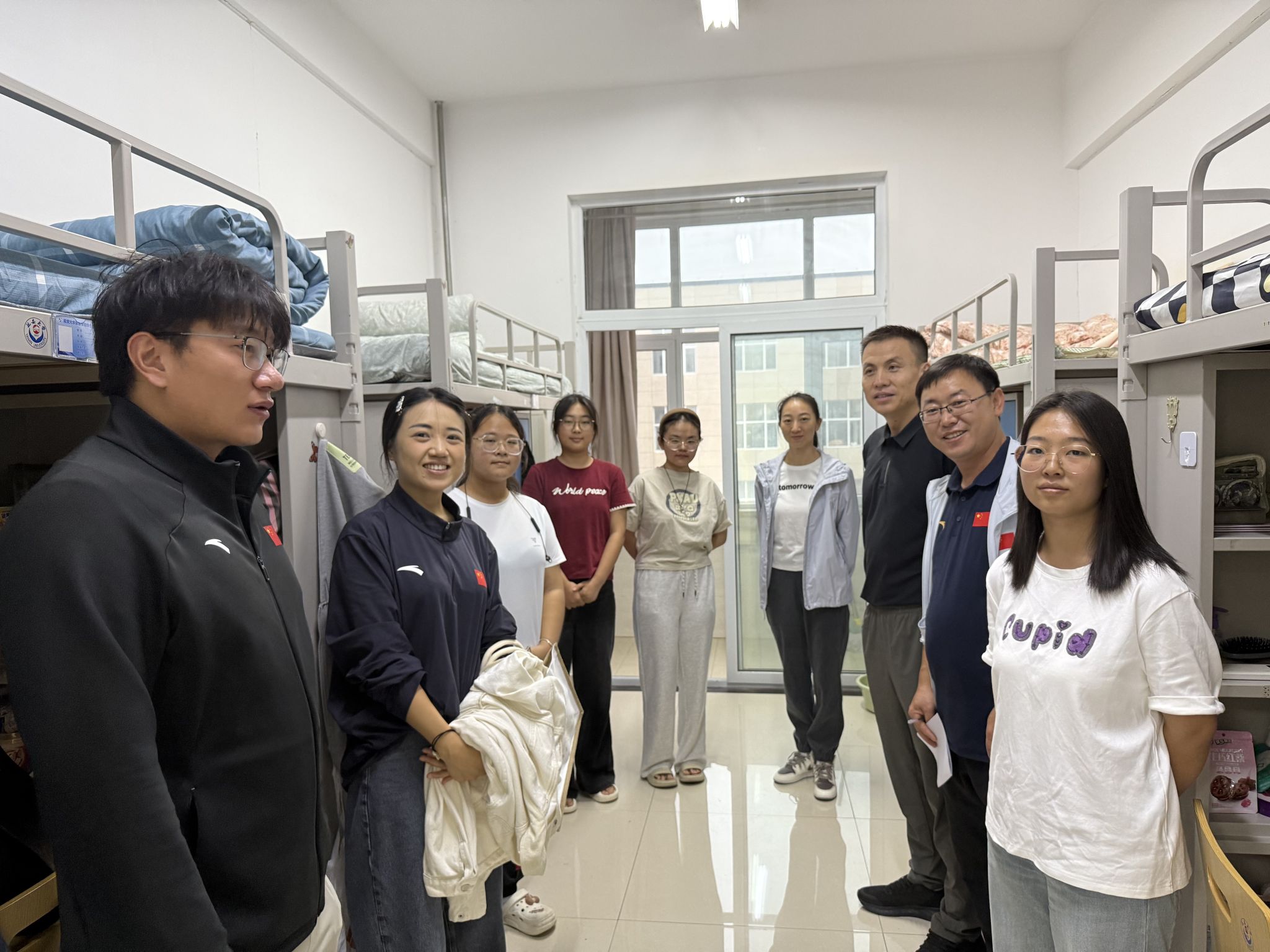 迎新工作圆满结束,9月2日下午,公海5500线路检测党委书记兰鸿涛、院长宗有智、党委副书记徐海阔,副院长宗延伟、薛亚东、张应龙,研究生办公室主任许荟蓉、教学办公室主任付东阁,25级新生班主任李才才、蔡佳、马振嘉、常艺凡深入宿舍看望新生,对新生宿舍同学们的住宿情况、入学生活适应情况进行了细致了解。