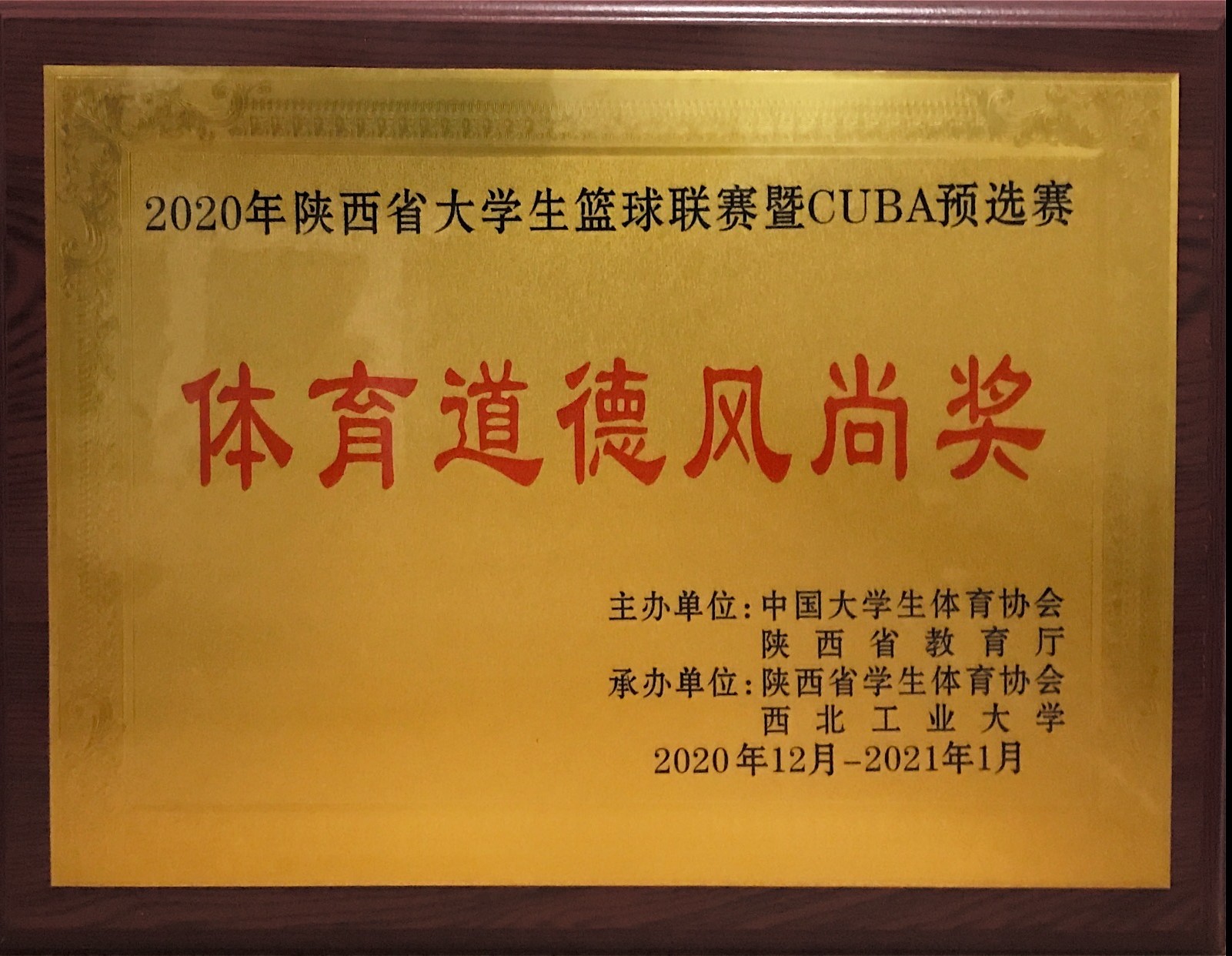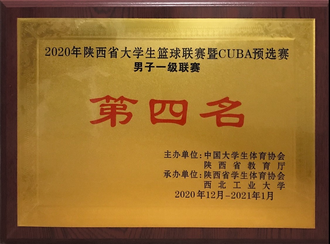 1月9日,由中国大学生体育协会、陕西省教育厅主办,陕西省学生体育协会、西北工业大学承办的第23届中国大学生篮球联赛暨CUBA(陕西赛区)比赛在西北工业大学落幕。我校男子篮球代表队经过顽强拼搏,最终获得联赛第四名好成绩,并获得“体育道德风尚奖”,将代表陕西高校征战CUBA全国联赛。王瑞老师获“优秀教练员”称号,学生武涛、孙静璇荣获“优秀运动员”称号。