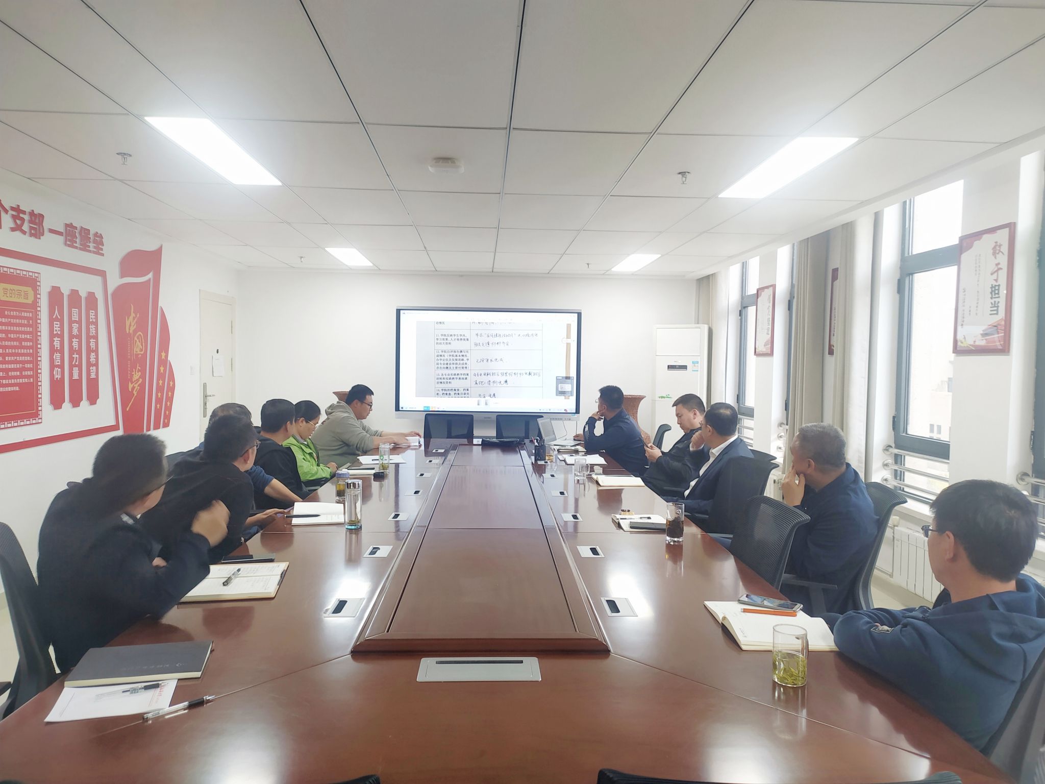 宗有智院长对本轮审核评估工作的审核评估指标体系、流程及原则逐项进行了再解读,并从学院层面对审核评估任务进行了再分解、再安排,对各项工作进一步进行细化分工。与会人员就审核评估指标的内涵、资料归档要求、评估工作方案、自评报告等进行了交流讨论。