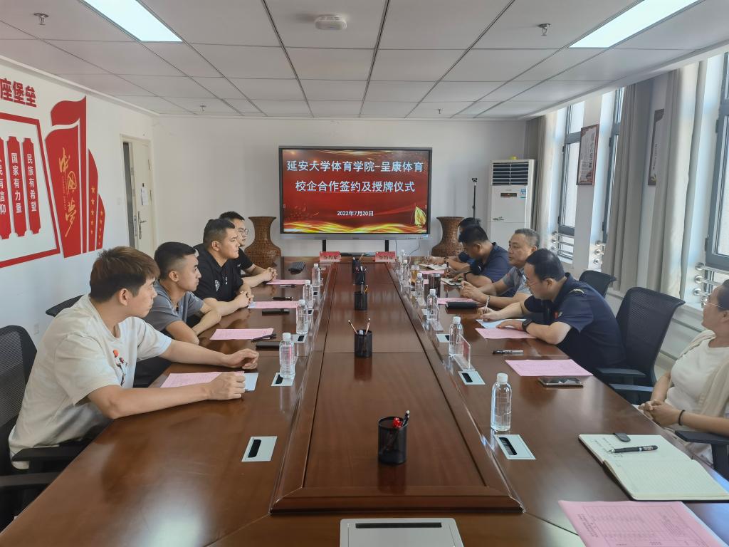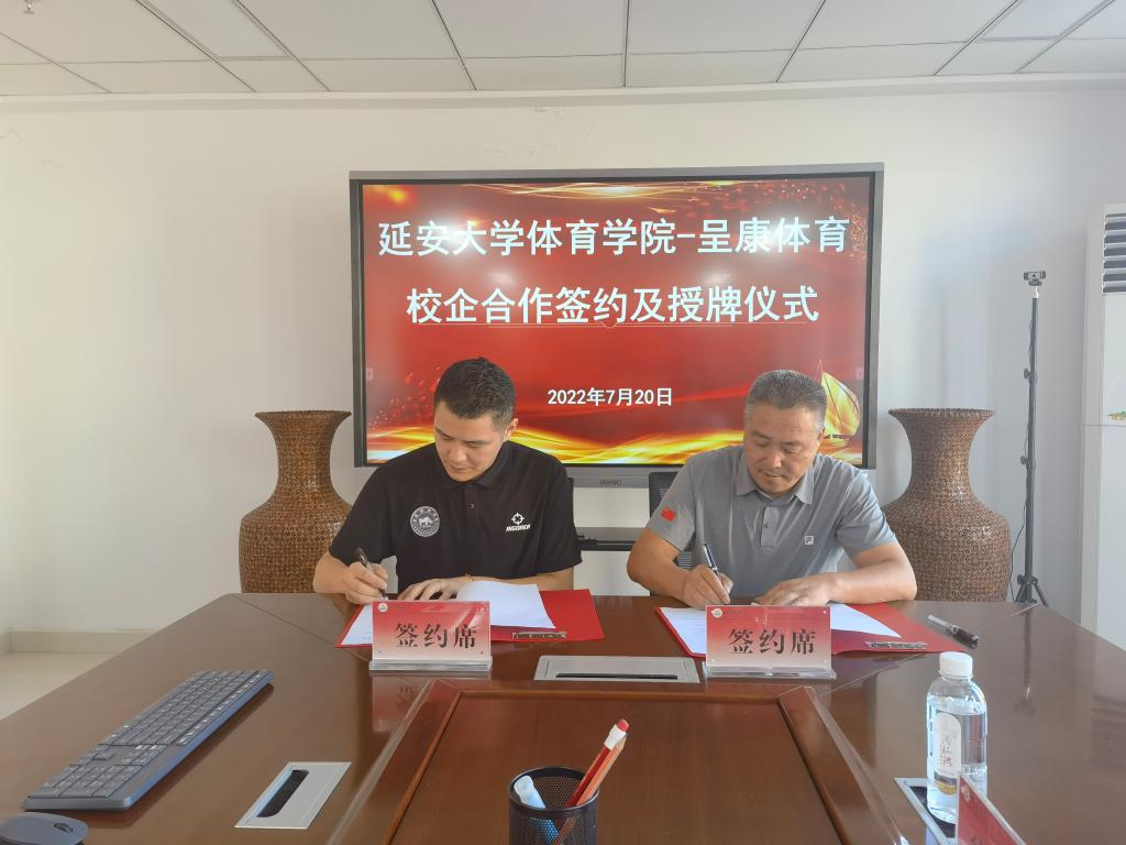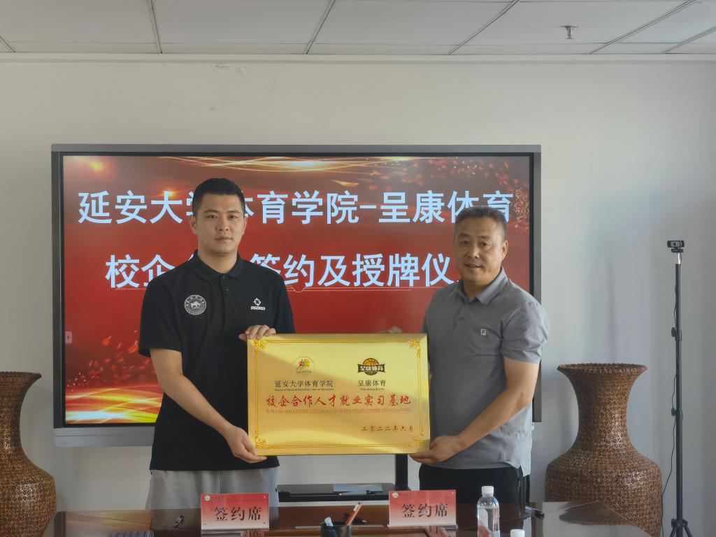 7月20日下午,呈康体育与公海5500线路检测在学院党员活动室举行校企合作协议签约及大学生实习就业基地授牌仪式,呈康体育西安分公司、西安冬俊体育发展有限公司总经理董茂伟、区域经理邓磊、区域经理刘远航、人力资源经理严锦杰,公海5500线路检测院长宗有智、党委书记兰鸿涛、副院长张应龙、理论教研室主任王军棉参加了签约仪式,签约仪式由党委副书记徐海阔主持。
