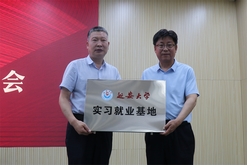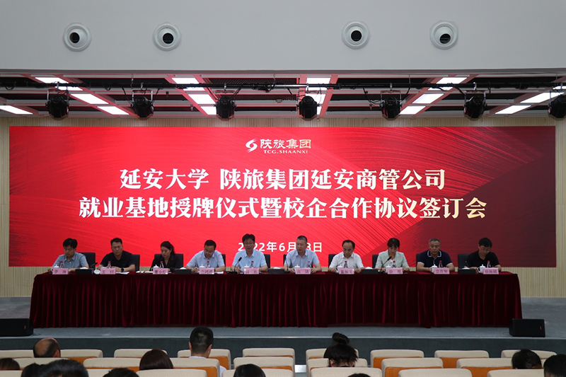 兰鸿涛和曹小红代表双方签署《实习就业基地协议》,吕达向陕旅集团延安商管公司“公海贵宾会5500iii实习就业基地”授牌。