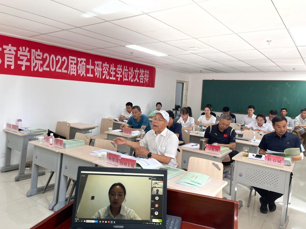 答辩毕业生按照学科顺序和抽签顺序依次进行了毕业论文的陈述和答辩。经过一天的紧张工作,2022届8名体育教育训练学专业、4名学科教学(体育)专业、5名硕师计划研究生完成了硕士毕业论文答辩,学院部分教师和全体研究生到场聆听本次答辩。