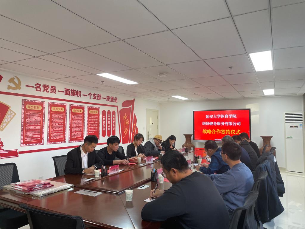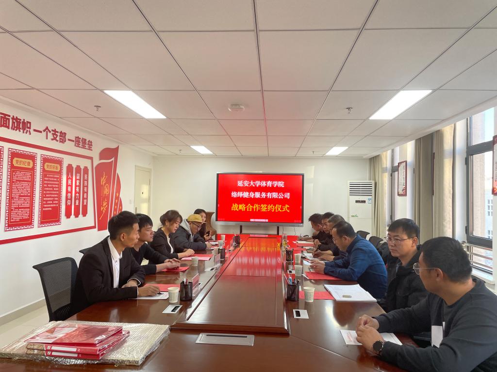 11月30日下午,公海5500线路检测与延安市宝塔区络绎健身服务有限公司战略合作签约仪式在学院党员活动室举行。公海5500线路检测党委书记兰鸿涛、党委副书记徐海阔、副院长张应龙及球类教研室主任姜小峰、教师付东阁参加了战略合作签署仪式,签约仪式由院长宗有智主持。