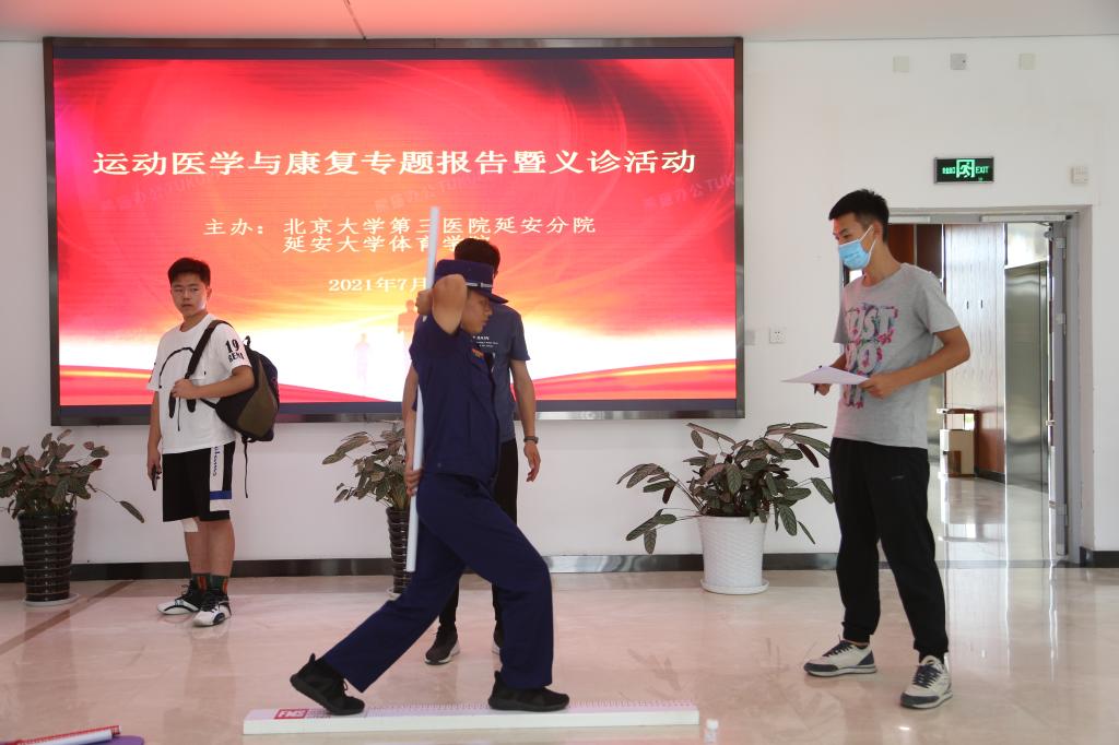 7月10日下午,公海5500线路检测联合北京大学第三医院延安分院在我校行政楼一楼举行运动性疾病与运动康复专题报告暨义诊活动,北京大学第三医院延安分院运动医学科主任庞军教授、北京大学第三医院运动医学科专家王佳宁博士、张志宇副主任、苏晨晨医师,延安消防救援支队新训大队队长张翼鹏,北医三院延安分院医护人员、公海5500线路检测师生代表、部分教职工家属、延安消防救援支队战士及社会群众近300人参加活动。活动由党委书记兰鸿涛主持。