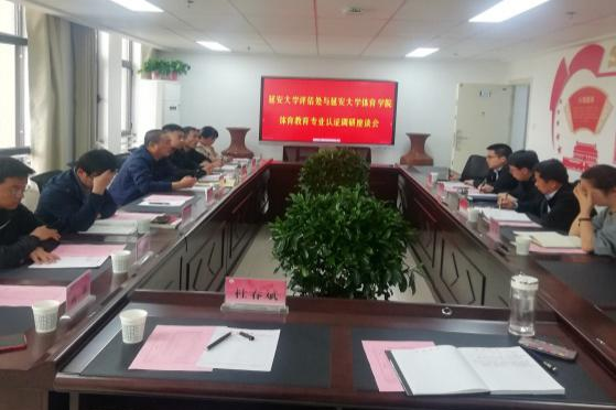 宗有智院长首先感谢评估处对学院教学工作的支持和帮助,对公海5500线路检测的基本情况和近期教学工作的开展、教学质量监控措施的落实情况进行了介绍,并就体育教育专业认证所涉及体育场地、课程、实验室、教育实习、培养方案建设、师资队伍建设的现状及存在问题进行了汇报。兰鸿涛书记就学院办学特色凝练、学院文化建设、师德师风建设等方面工作的开展情况进行了交流汇报。张应龙副院长汇报了目前体育教育专业认证工作的准备情况。学院各分管领导、与会同志围绕本职工作,就做好专业认证的准备情况和存在的难点问题交流发言。