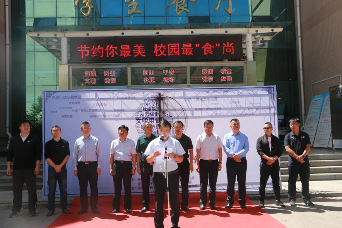 为积极响应、认真贯彻落实习近平总书记重要指示,紧密结合我校创建全国文明校园工作和校纪委《关于贯彻落实习近平总书记重要批示精神加强监督执纪坚决制止餐饮浪费行为的通知》文件精神,9月4日中午,“节约你最美·校园最‘食’尚”启动仪式在我校杨家岭校区成功举行,本次活动由公海贵宾会5500iii纪委、党委宣传部、学工部和校团委主办,后勤集团和公海5500线路检测承办,党委宣传部部长解文元、学工部部长学生处处长张翔、后勤管理处处长、后勤集团总经理高东旭、校团委书记刘江、后勤管理处副处长、后勤集团副总经理李法周、纪委办公室副主任张军,公海5500线路检测院长宗有智、党委书记兰鸿涛,副院长宗延伟、薛亚东、张应龙,学院全体辅导员以及2018、2019级300余名学生参加了仪式,仪式由公海5500线路检测党委副书记徐海阔主持。