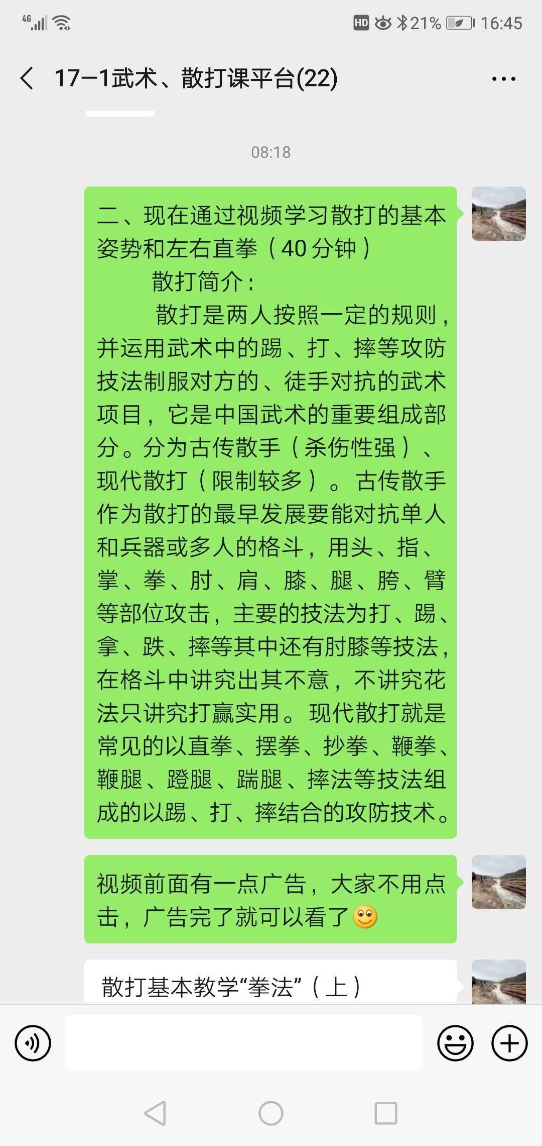 开学第一天,15个班级的《大学体育》网课,如期开课。为加强新冠肺炎疫情防控工作,根据教育部、省教育厅有关工作要求,学校决定在新冠肺炎疫情防控期间开展本科课程线上教学,大学体育教学部积极响应学校“停课不停教,停课不停学”教学目标,经前期多次论证,起草并制定《公海贵宾会5500iii新冠肺炎疫情防控期间大学体育实施方案》,方案从六个方面对在新冠肺炎疫情期间的《大学体育》课进行详细安排,利用雨课堂;智慧树;腾讯会议;钉钉直播;微信等平台,围绕“全程关爱,全面育人”的目标,整合现有资源,体现体育教学特色,引导学生积极参加体育锻炼,缓解心理压力,提高身体素质,增强身体抵抗力和机体免疫力。根据《大学体育》教学大纲要求,结合体育课特点,考虑居家锻炼的环境和条件,推送以身体素质的体能训练为主,各个运动项目为辅的教学内容,采用课堂教学和日常锻炼指导等多种方式进行。教师面对疫情,教学热情高涨,学生响应积极,课堂效果良好,目前课程正有序开展中。