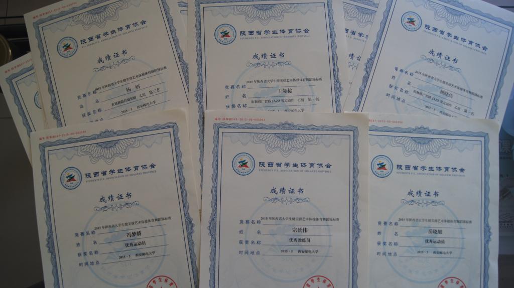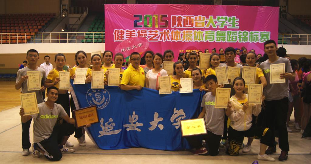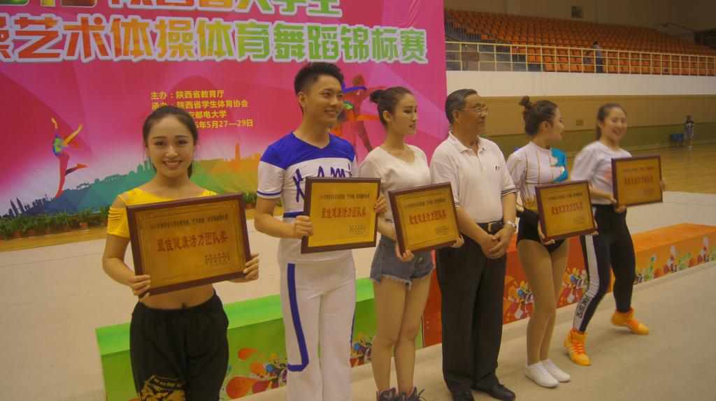 由陕西省教育厅主办的、陕西省学生体育协会、西安邮电大学承办的2015年陕西省大学生健美操锦标赛,于5月27至31日在西安邮电大学长安校区体育馆举行。由6名老队员和12名新队员组成的健美操队,在领队郑兵、教练宗延伟、张智颖的带领下,经过赛前一个多月的精心编排与刻苦集训,并希望通过本次比赛为年底的全国比赛积累参赛经验。在与教育部批准的设有高水平运动队和体育特长生单独招生的高校同组参加的C组比赛中,参加的4个项目中有3个项目进入前三名,其中街舞Jazz规定套路获得第一名;中国风健身舞-神秘雪山获得第二名;有氧舞蹈自编套路获得第三名,最终获团体总分第三名,并获“最佳健康活力团队奖”。宗延伟老师被评为“优秀教练员”冯梦娇、岳晓旭同学被评为“优秀运动员”。