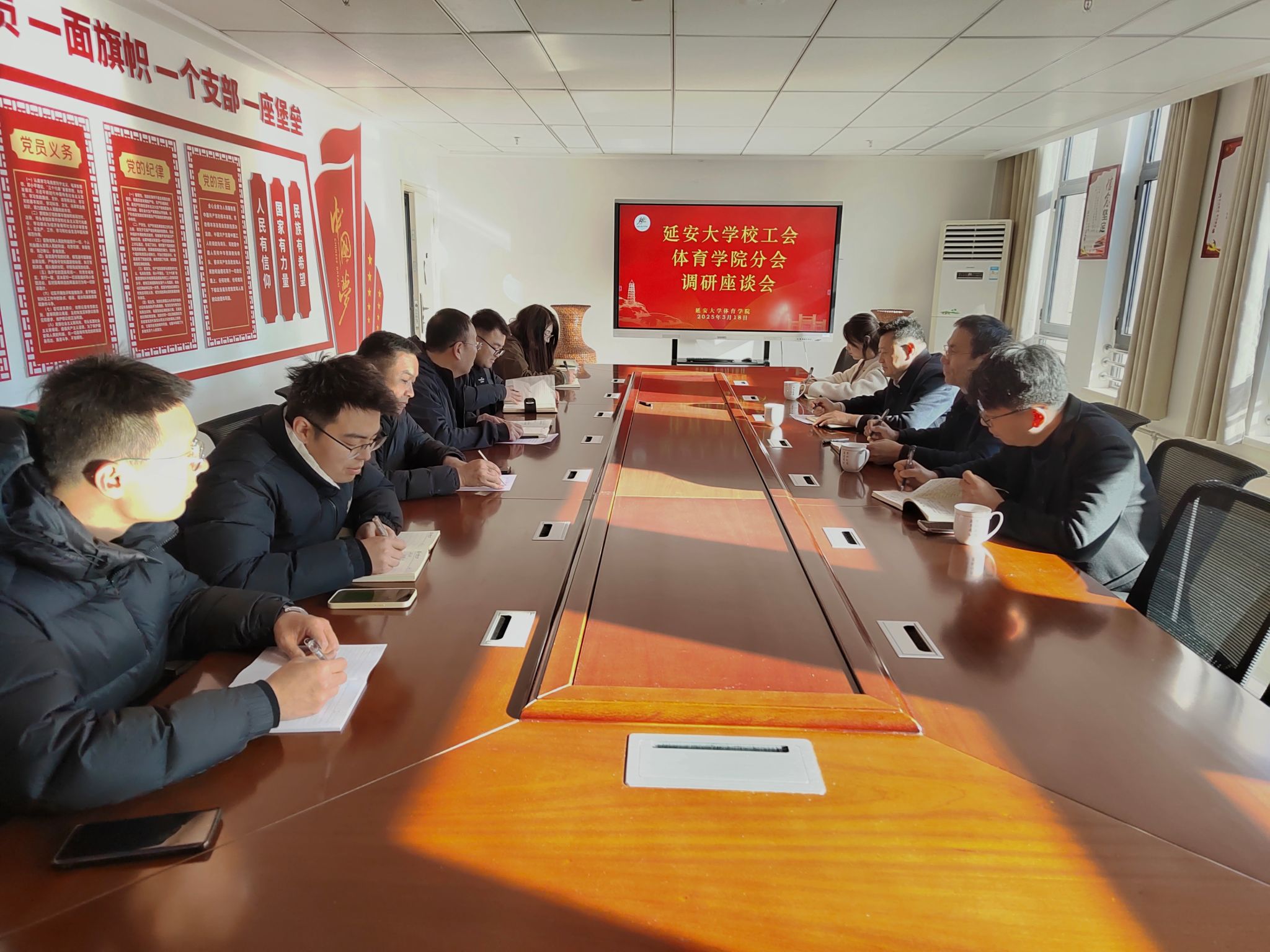 3月18日上午,校工会来我院调研交流,校工会主席杨曦东、副主席张永东、综合科科长高力、文体科科长张庆玲,我院党委书记兰鸿涛、体育教育系主任杜春斌、党委副书记徐海阔、组织员李才才,学院工会委员张菁、王凯、王海泉,教师马振嘉、石牙牙参加了座谈会,调研座谈活动在学院党员活动室举行。