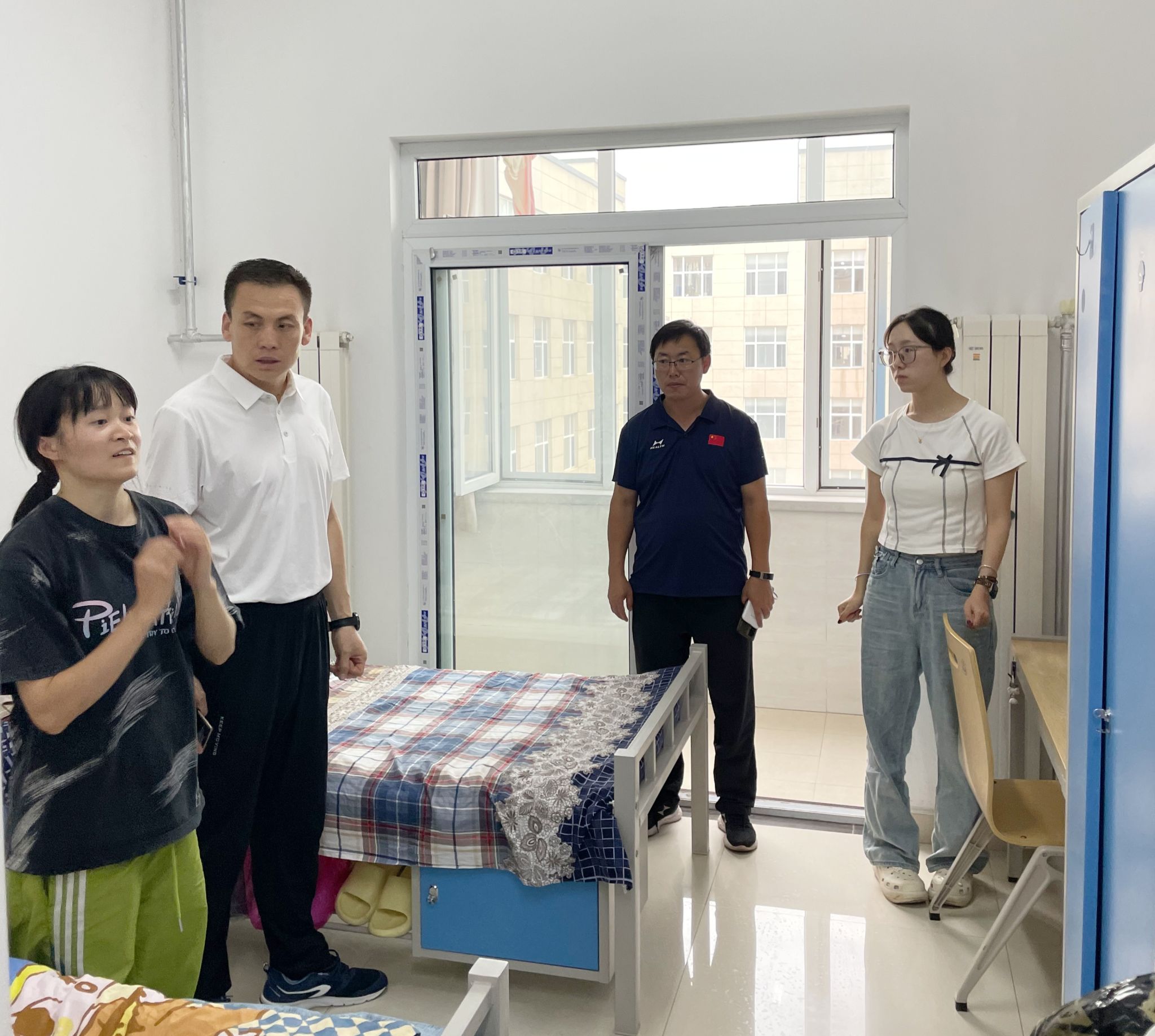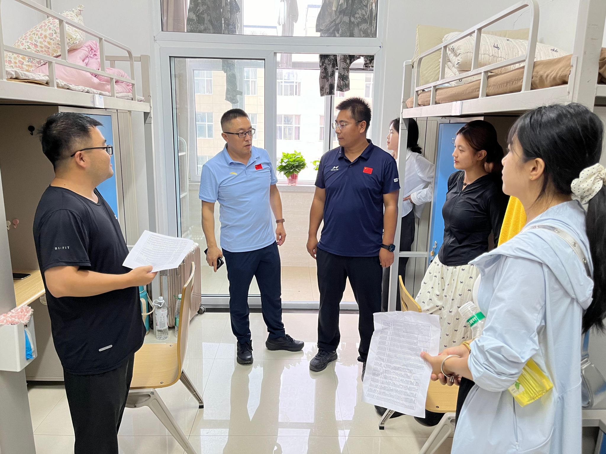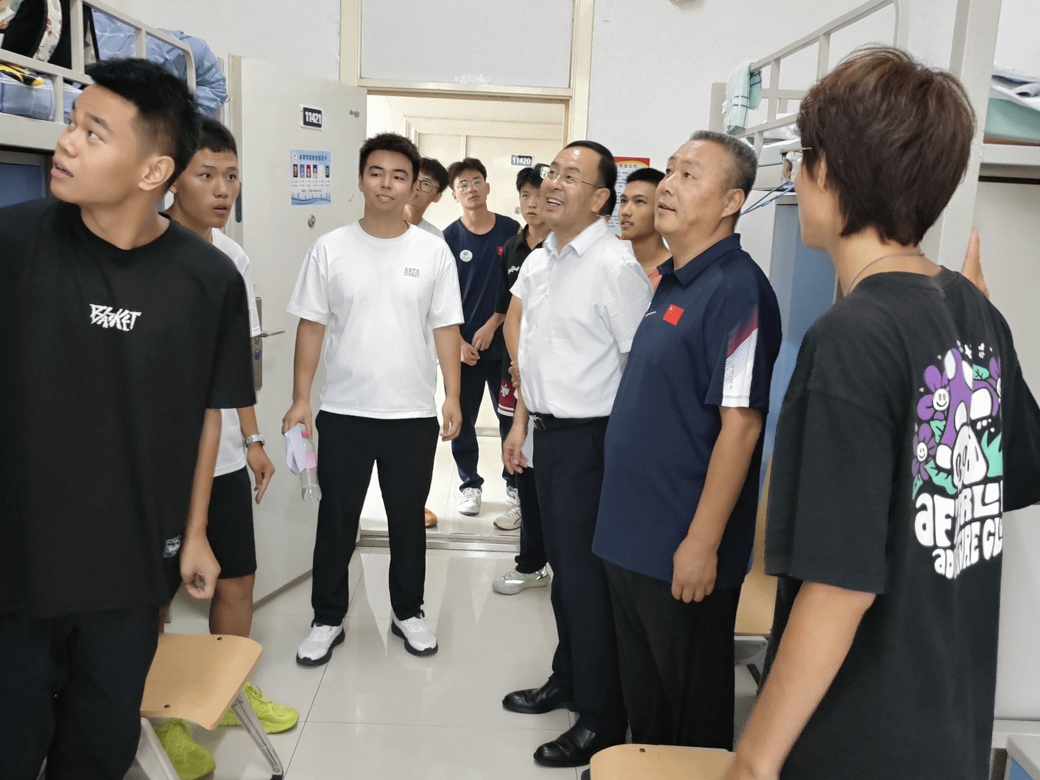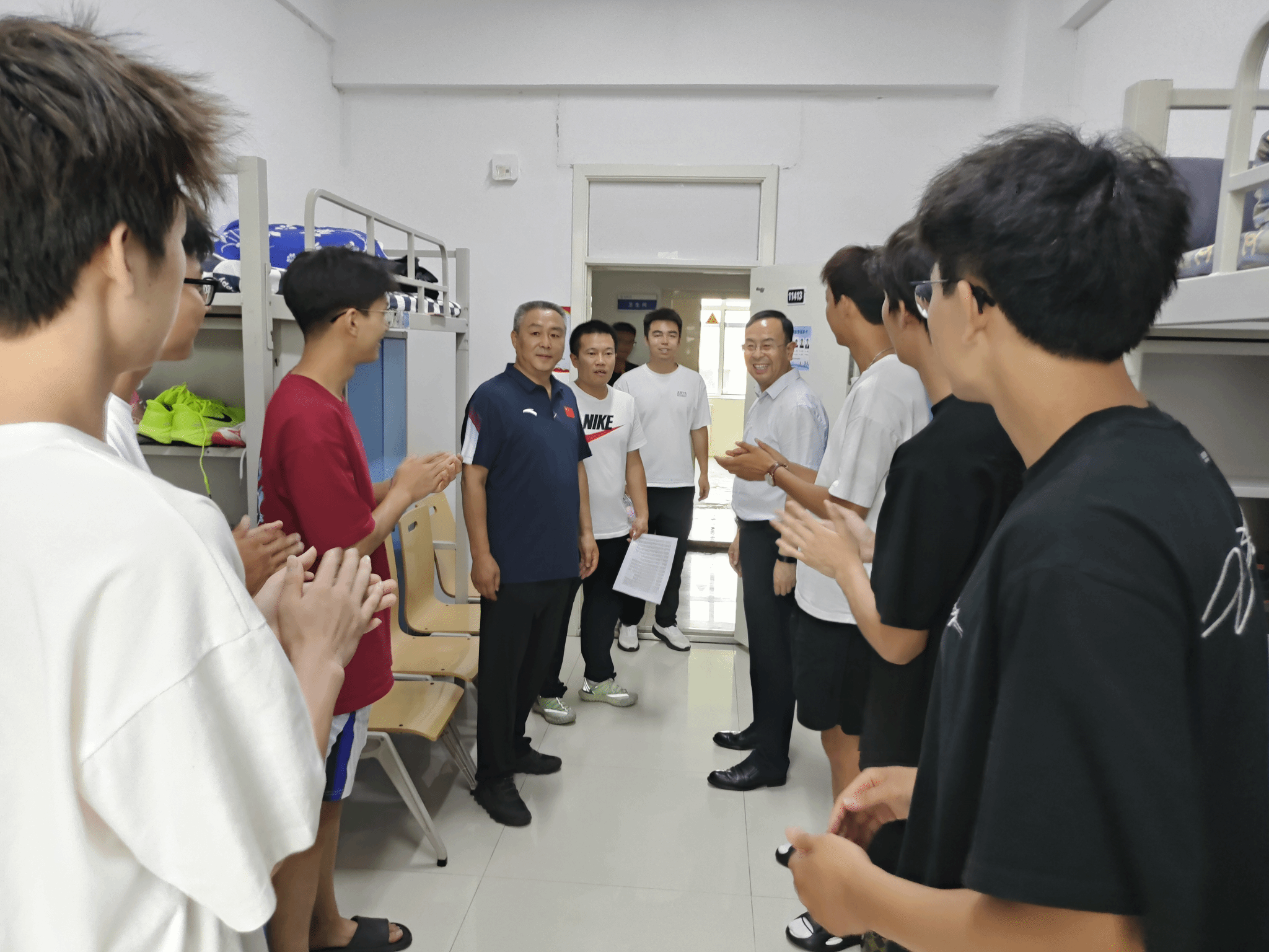 在学生宿舍,各位院领导和学生们亲切交谈,询问新生进校感受、生活保障以及其他年级学生学习情况,希望同学们尽快适应大学生活,端正学习态度,为新学期创造一个良好的开端;叮嘱同学们在坚持运动训练的同时要提高自身安全防范意识,做好安全防护措施,避免运动时发生意外;勉励同学们在即将到来的军训生活中刻苦训练,不断磨炼意志;无悔青春、不负韶华,积极做好大学四年学涯规划,丰富自己的大学生活,为将来毕业就业打下坚实基础。