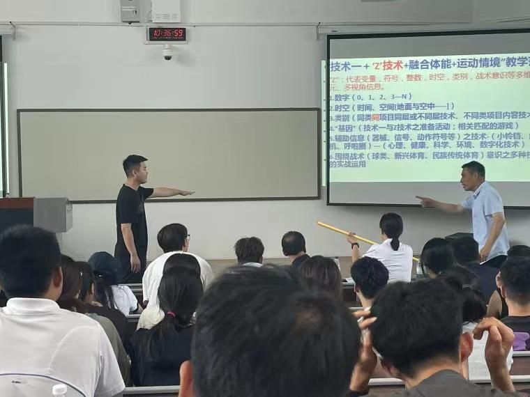 为进一步提升教师和学生教育教学与实践能力,促进师生更加全面地了解《义务教育课程标准》(2022版),掌握中学生体育教学设计与方法,7月3日,我校教务处、公海5500线路检测特邀山草体育工作室创始人、高级教师陈志山老师为师生作了《“技术一+‘Z’技术+‘融合体能’+‘运动情景’”教学范式的理论与实践》专题讲座。公海5500线路检测党委书记兰鸿涛、院长宗有智、党委副书记徐海阔、部分教师、全体研究生和21级、22级本科生参加,讲座由公海5500线路检测副院长张应龙主持。