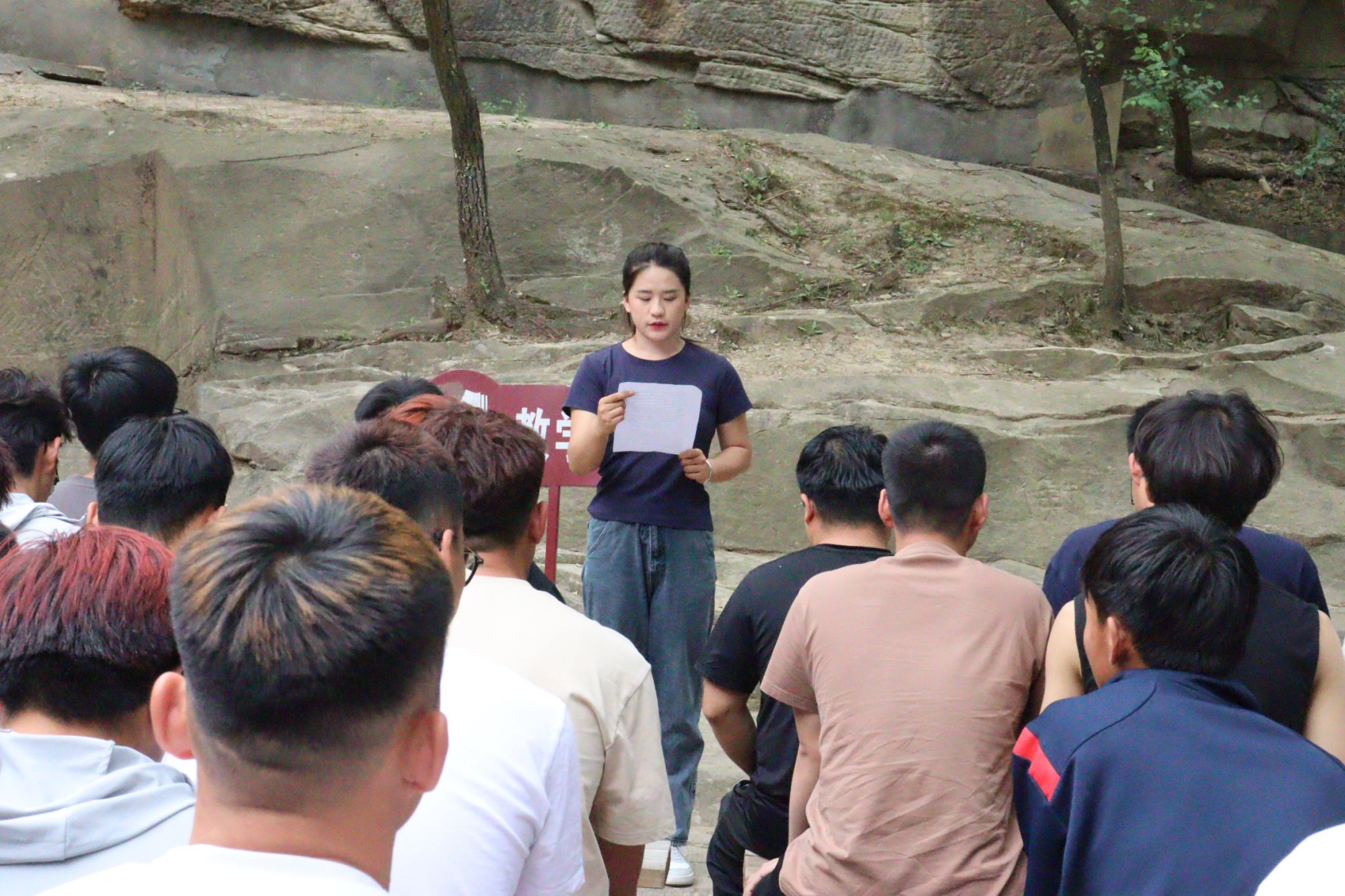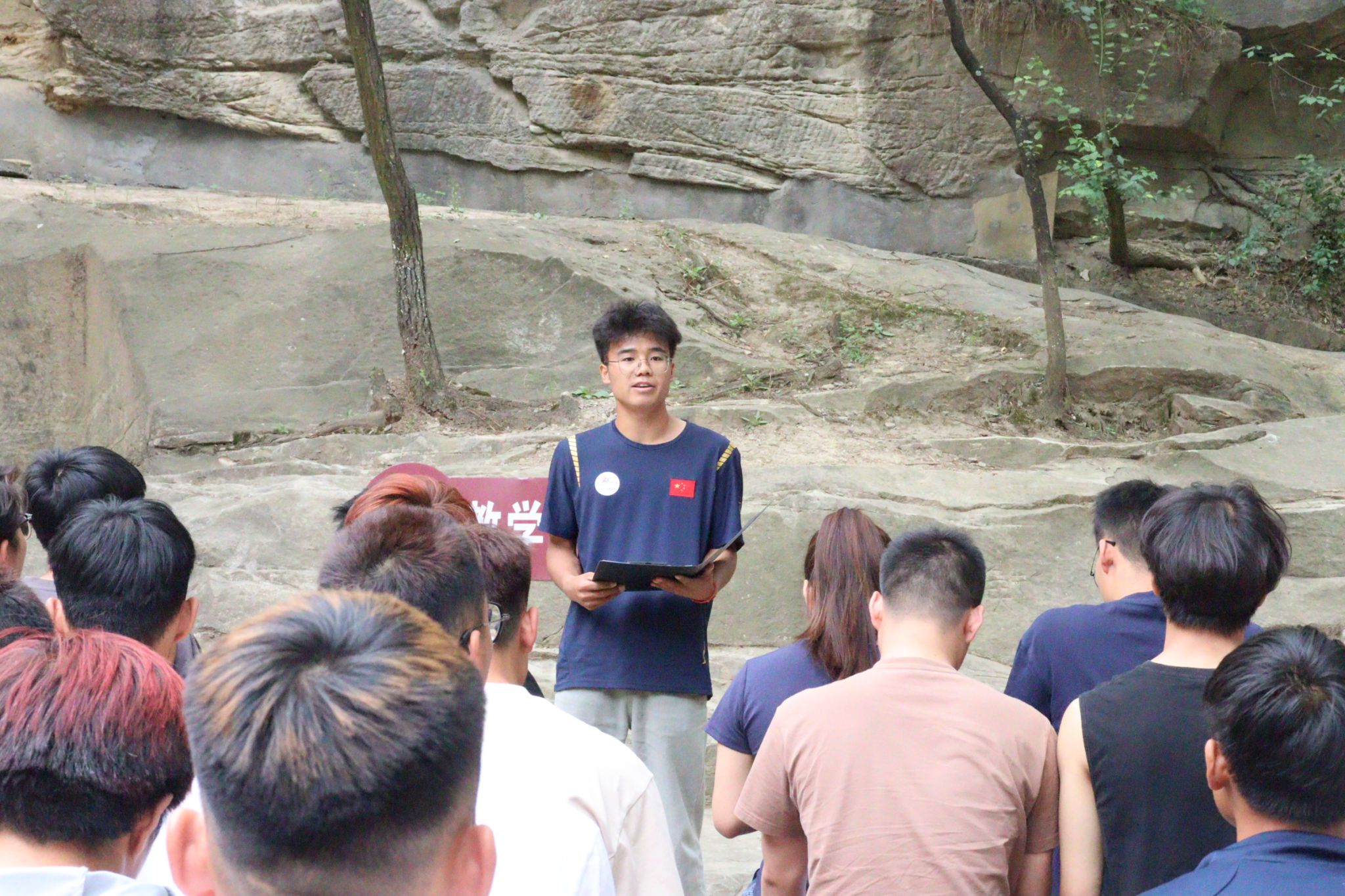 在中共七大会议旧址前,本科生党支部王天慧同学作了题为《学党纪坚定理想信念 展风采凝聚青春力量》的演讲。