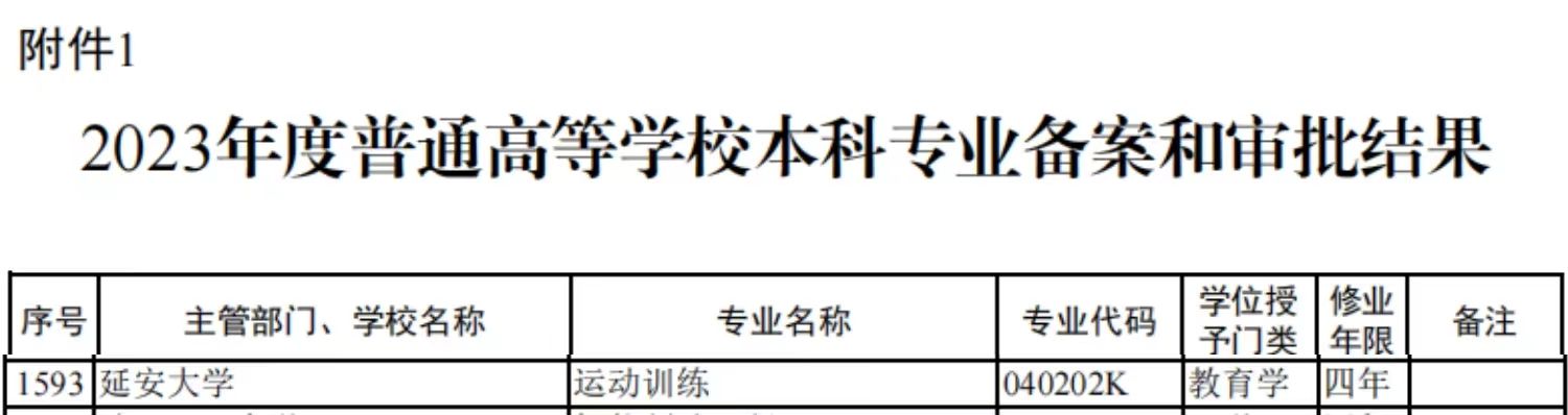 近日,教育部发布《关于公布2023年度普通高等学校本科专业备案和审批结果的通知》,我校申报的运动训练专业获批增设为普通高等学校本科专业。