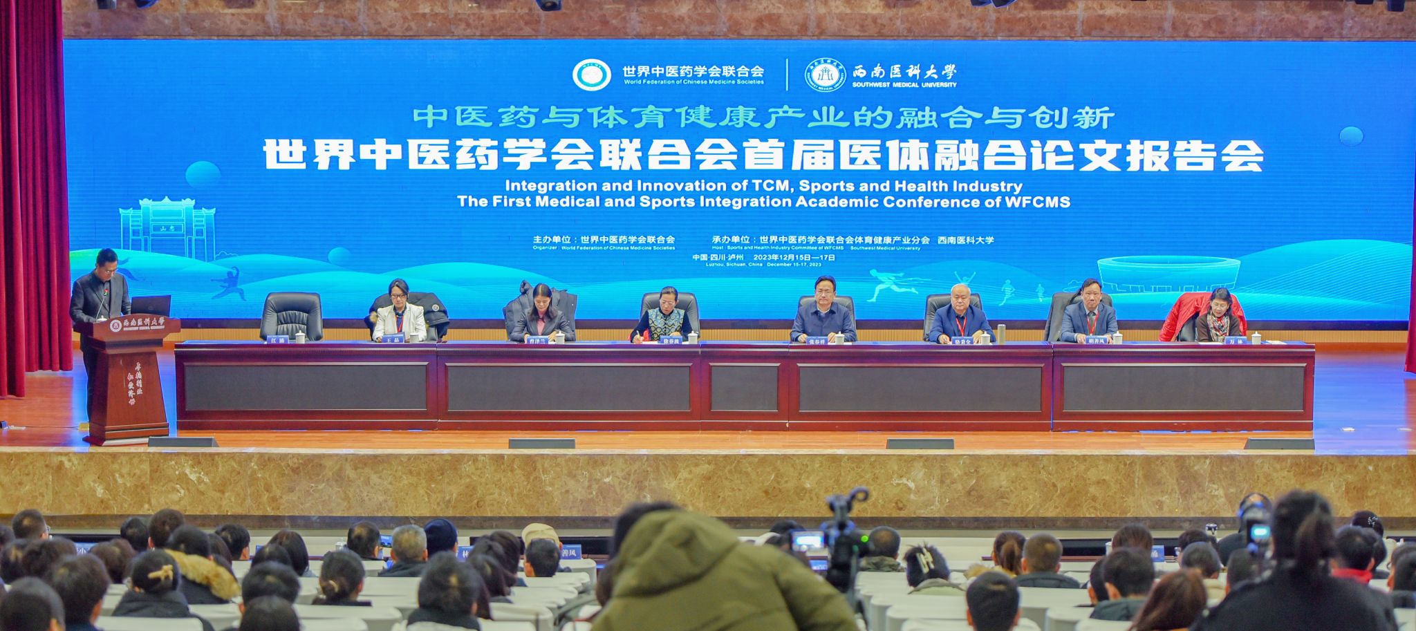 本次会议以“中医药与体育健康产业的融合与创新”为主题,近200名来自国内外的各界专家学者、研究人员和从业者齐聚一堂,深入探讨中医药文化与体育健康产业的未来发展方向,交流医体融合研究的思路,分享最新研究成果。会议分为开幕式、大会报告、专题报告和闭幕式四个单元,会议开幕式由西南医科大学党委常委、副校长江涌主持。