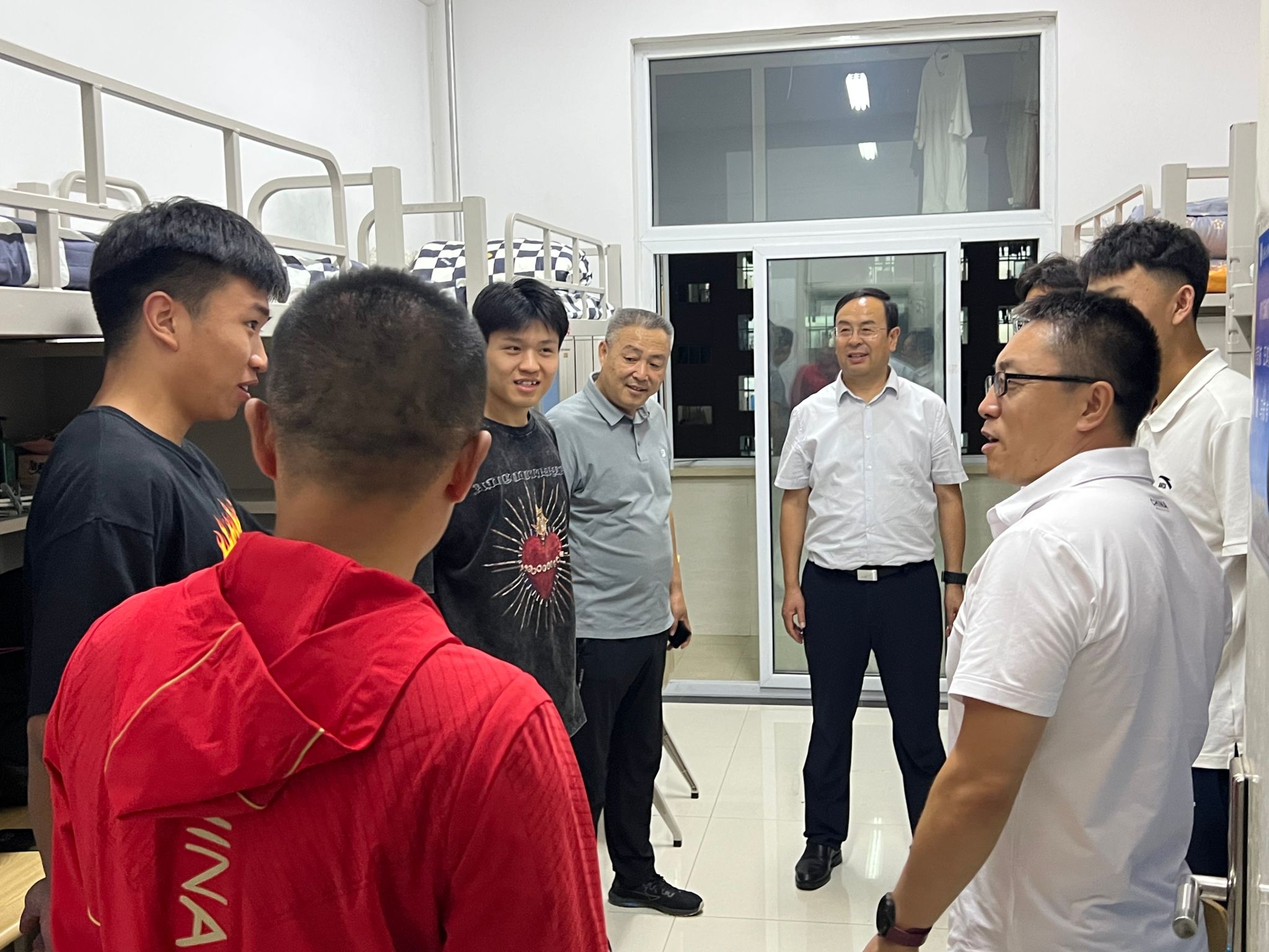 在学生宿舍,各位院领导和学生们亲切交谈,询问新生进校感受、生活保障以及其他年级学生学习情况,希望同学们尽快适应大学生活,进入学习状态,端正学习态度,为新学期创造一个良好的开端;叮嘱同学们在坚持运动训练的同时要提高自身安全防范意识,做好安全防护措施,避免运动时发生意外;勉励同学们积极做好学涯规划,丰富自己的大学生活。