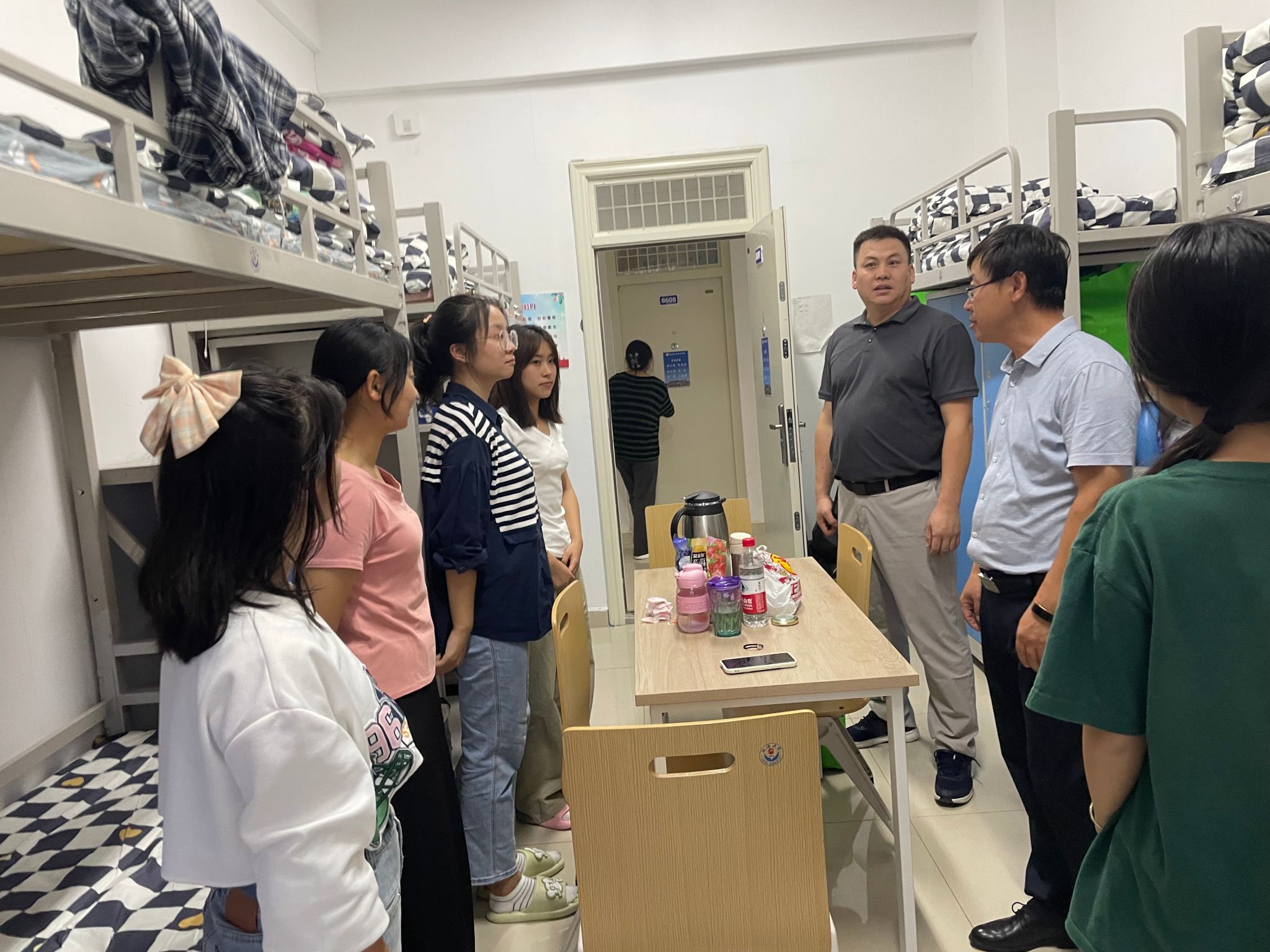 迎新工作接近尾声,公海5500线路检测院长宗有智,党委书记兰鸿涛,党委副书记徐海阔,副院长宗延伟、薛亚东,新生班主任马滔、李才才、王海泉,对新生宿舍同学们的住宿情况、入学生活适应情况进行慰问。