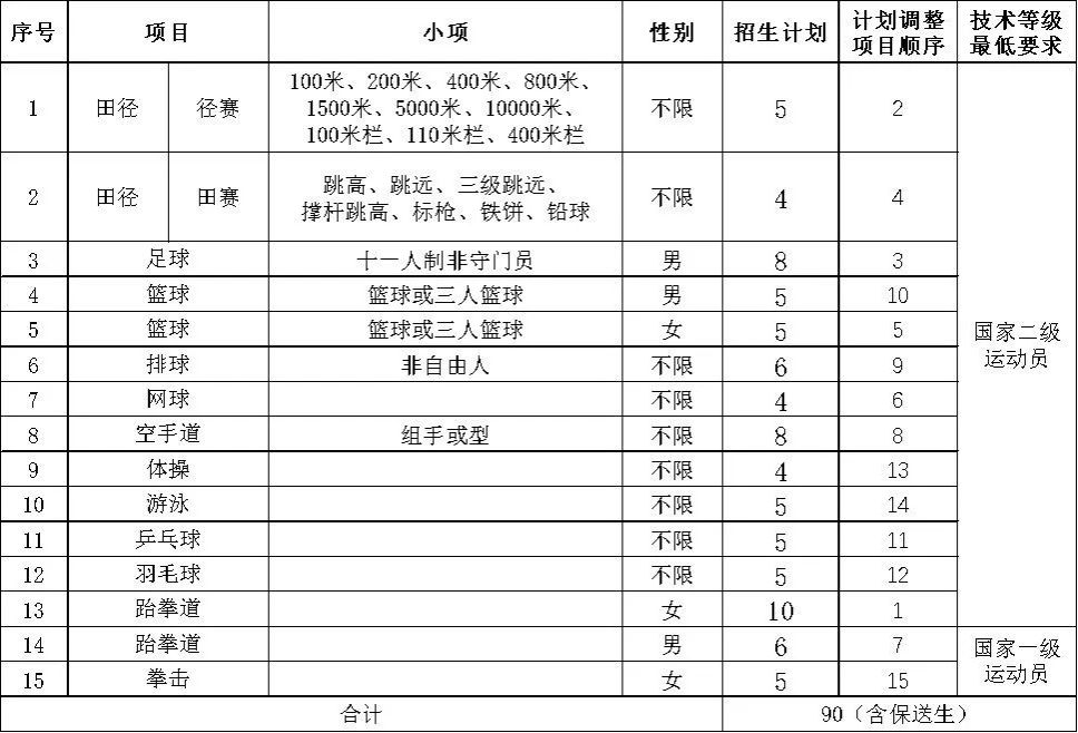 备注:被我校录取的考生,入校后学习的运动项目需在学校开设的项目中选择。